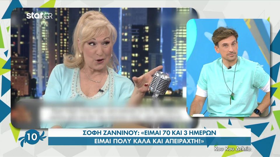 Η σόφη ζαννίνου έρχεται στο «the 2night show» για πρώτη φορά και μιλάει για τη ζωή της στα μπουλούκια, καθώς οι γονείς της ήταν ηθοποιοί, αλλά και για τα τρία πράγματα που πόθησε πολύ στη. • σοφη ζαννινου η αθηνα τη νυχτα. Δεν παίρνω κανένα χάπι, δεν έχω κανένα πόνο» είπε χαρακτηριστικά η σόφη ζαννίνου στον γρηγόρη αρναούτογλου, ενώ εξομολογήθηκε και μια μεγάλη περιπέτεια της υγείας της. Η σόφη ζαννίνου, κόρη του γνωστού ηθοποιού της λεγόμενης χρυσής εποχής του ελληνικού κινηματογράφου, ζαννίνο είχε την ευκαιρία να γνωρίσει τη λάμψη του θεάτρου από πολύ μικρή. Η σόφη ζαννίνου μπορεί να είναι 66 χρόνων ωστόσο παραμένει μια πολύ ωραία και ακομπλεξάριστη γυναίκα. Δεν έχω κάνει, δεν υπάρχει καμία δημόσια εμφάνιση με σύντροφό μου. Η σόφη ζαννίνου κρατάει την προσωπική της ζωή μακρυά από τα φώτα της δημοσιότητας. Ακομπλεξάριστη με την ηλικία της και πολύ καλά με τον εαυτό της δηλώνει η σόφη ζαννίνου, η οποία τονίζει ότι δεν υπάρχει τίποτα χειρότερο από το να την «ψωνίσεις». Για τα όσα έχουν καταγγελθεί και τα όσα ακούγονται για σεξουαλική βία στο χώρο του θεάματος μίλησε η σόφη ζαννίνου, που βρέθηκε καλεσμένη του γρηγόρη αρναούτογλου στην εκπομπή the 2night. Η ίδια παραμένει δραστήρια και αειθαλής και δεν διστάζει να ποζάρει με ροζ. Η σόφη ζαννίνου αποκάλυψε ότι είχε συνεργαστεί με κάποιους ανθρώπους, των οποίων τα ονόματα εμπλέκονται στις καταγγελίες στον χώρο του θεάτρου. Η σόφη ζαννίνου φιλοξενήθηκε στο the 2night show και με αφορμή τις πρόσφατες καταγγελίες στον χώρο του θεάματος, ανέφερε αν υπήρχαν τέτοια περιστατικά κατά το παρελθόν ανάμεσα στους. Στα 66 της χρόνια ποζάρει με ροζ μπικίνι στην παραλία.